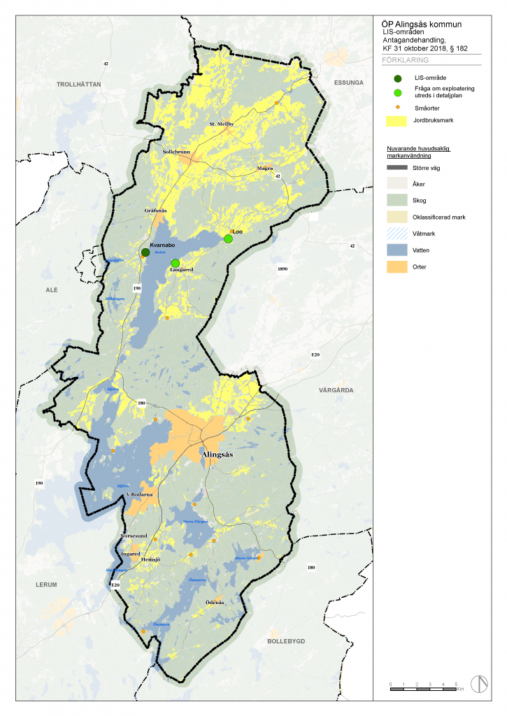 Av Länsstyrelsens råd om hantering av områden för landsbygdsutveckling i strandnära lägen s.k. LIS-områden i översiktsplaner framgår att det i Alingsås kommun endast är centralorten Alingsås som inte kan bedömas vara landsbygd.