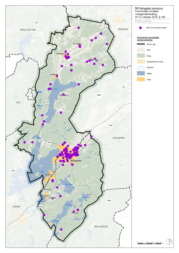 I Alingsås stad har sedan 1800-talet ett antal industrier varit verksamma, såsom garverier, mekaniska verkstäder, textilindustri, ytbehandlingsverksamheter, bryggeri, gasverk och gjuteri. Dessa verksamheter har medverkat till att det idag finns områden där marken är förorenad med bland annat tungmetaller, olja, cyanid och kolväten. I kommunen finns även sex kända avslutade deponier vilka klassas som förorenade områden. Kommunen har kartlagt områden där det kan finnas förorenad mark och ca 170 objekt har identifierats. Av dessa finns god kunskap om ca 30.